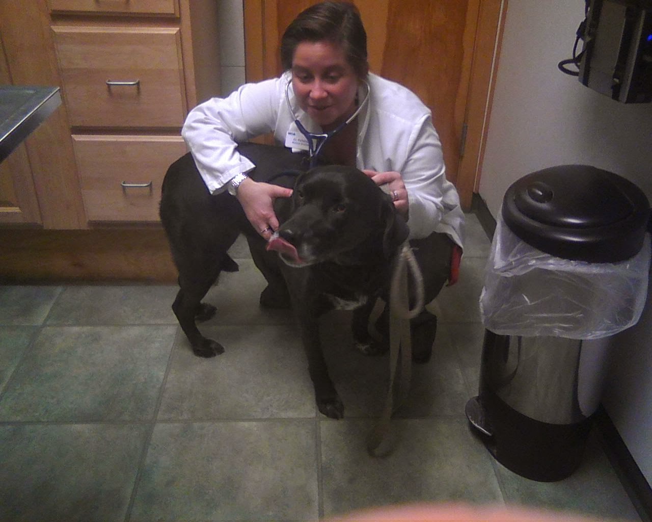 Lulu, the puppy, likes to get up close and personal, probably because I must seem like a GIANT to her. She wanted to see my "good as a two year old dog" teeth which are inside my GIANT mouth. She sure does seem interested in me. Of course, you know how much I LOVE attention so I won't be complaining.